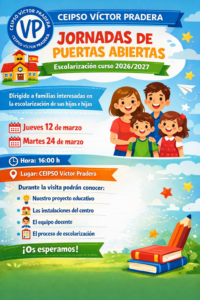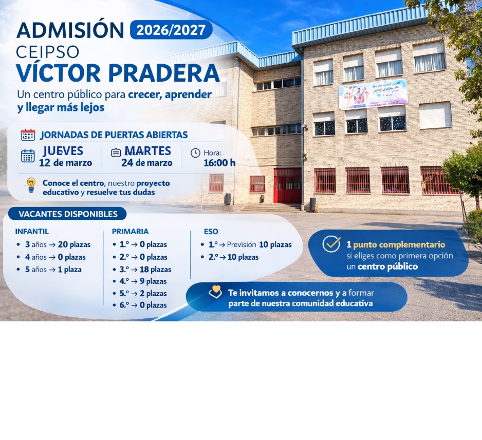 En el CEIPSO Víctor Pradera acompañamos a nuestro alumnado en una etapa clave de su vida, desde Educación Infantil hasta la ESO, con un proyecto educativo sólido, cercano y comprometido con la formación integral de cada niño y cada niña.